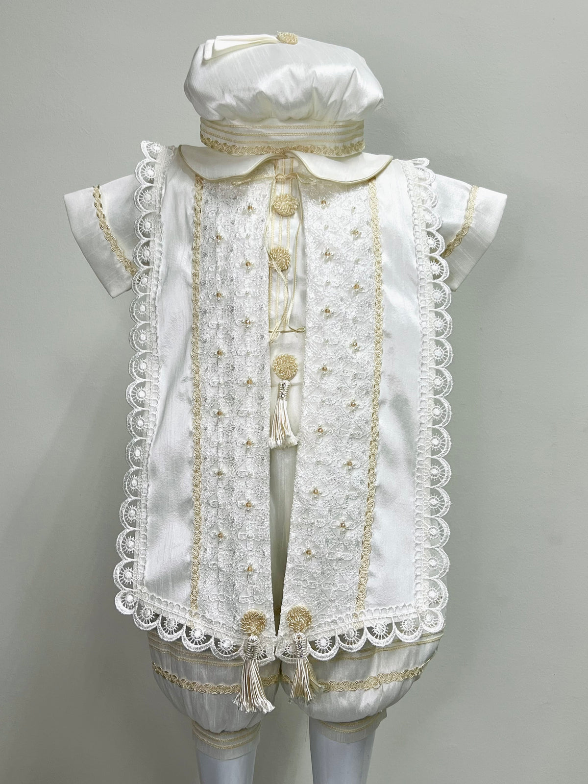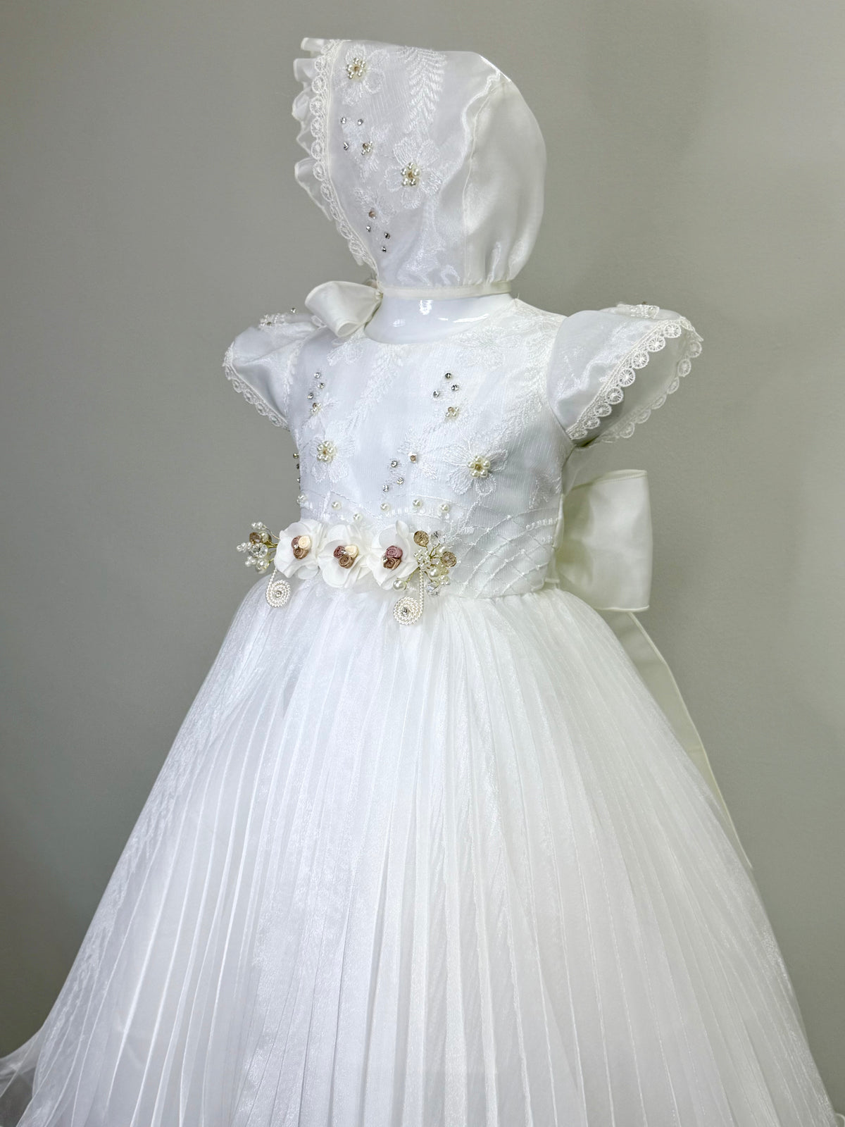Honramos la tradición y el significado espiritual de cada ceremonia, creando ropones que acompañan momentos de fe y bendición.